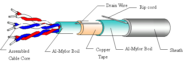 a.Mylar-aluminum tape for 1 pair. b.Soft copper tape for 5 pairs and above.